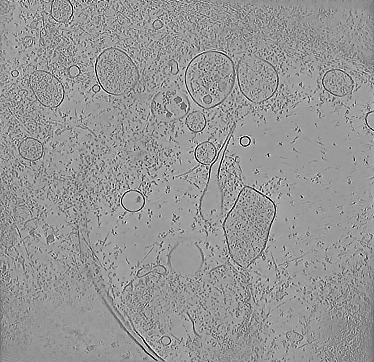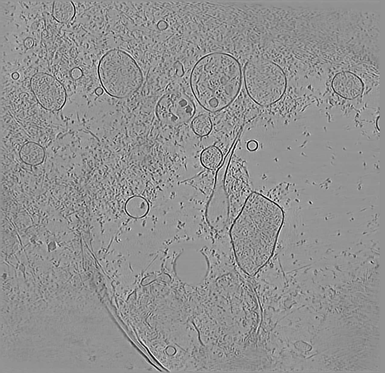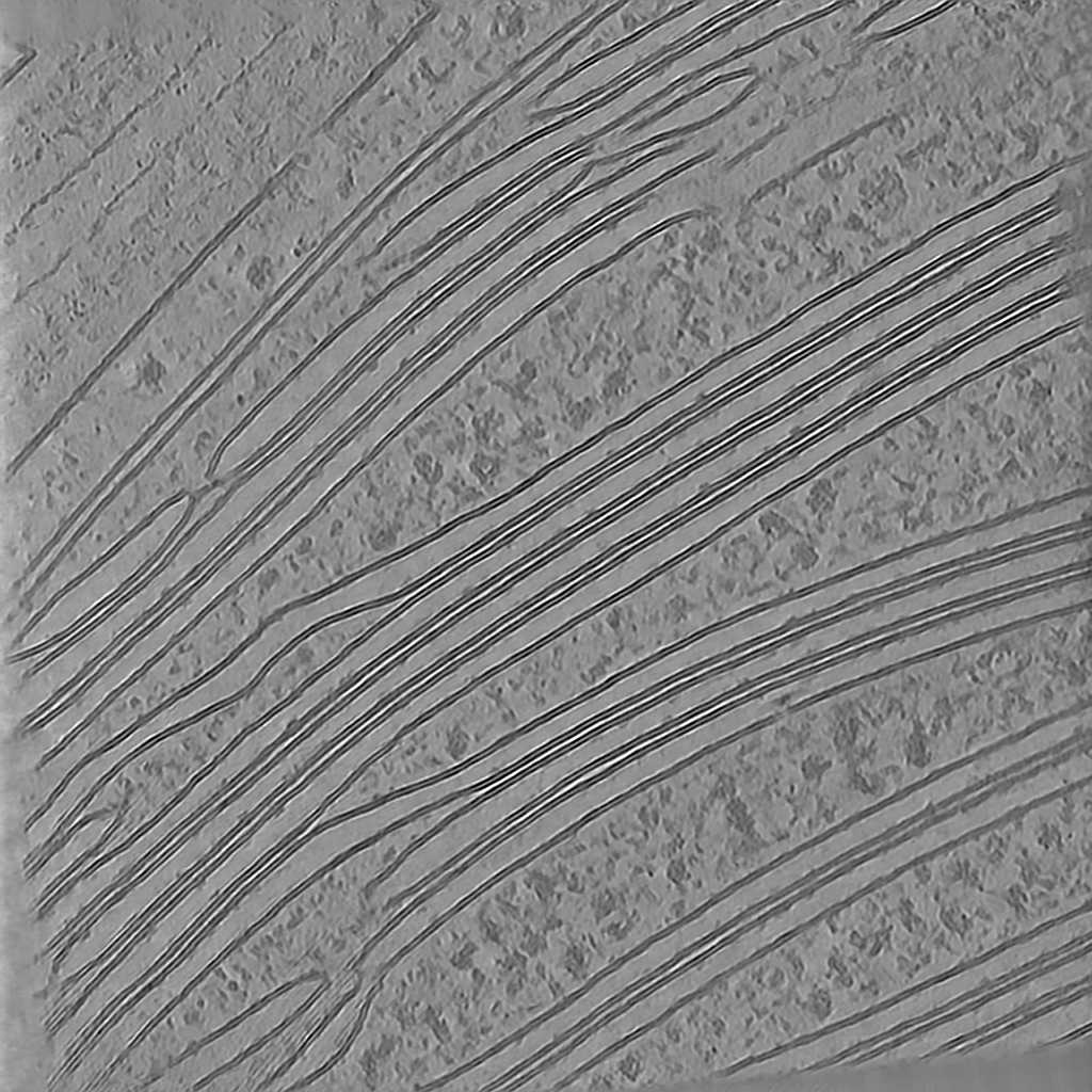 CryoLithe is a pre-trained model and yet it produces accurate reconstruction on new unseen dataset. Here, we apply CryoLithe to tilt-series from EMPIAR-12262, which contains non-infected cos-7 cells sampled at 5.525 Å/pixel. Crowded cellular environments are challenging to reconstruct accurately, a lot of overlapping features are projected onto the tilt series, and it becomes difficult to disentangle them.